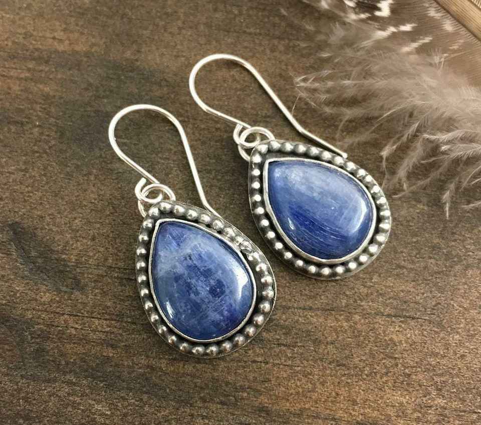 Kyanite Natural Gemstone Earring Silver Statement Jewelry