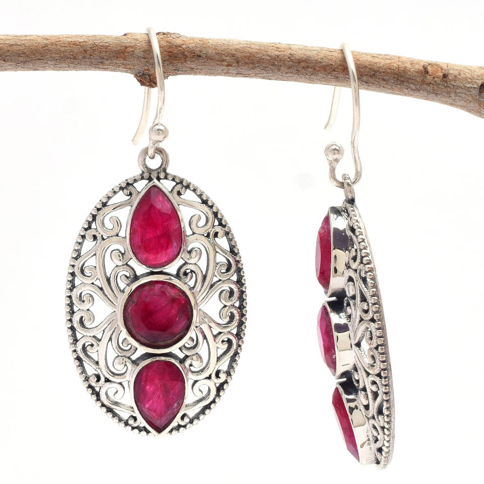 925 Solid Sterling Silver Drop Dangle Earrings Vintage Design Pear Shape Ruby Gemstone Trendy for Weddings Gifts Wholesale