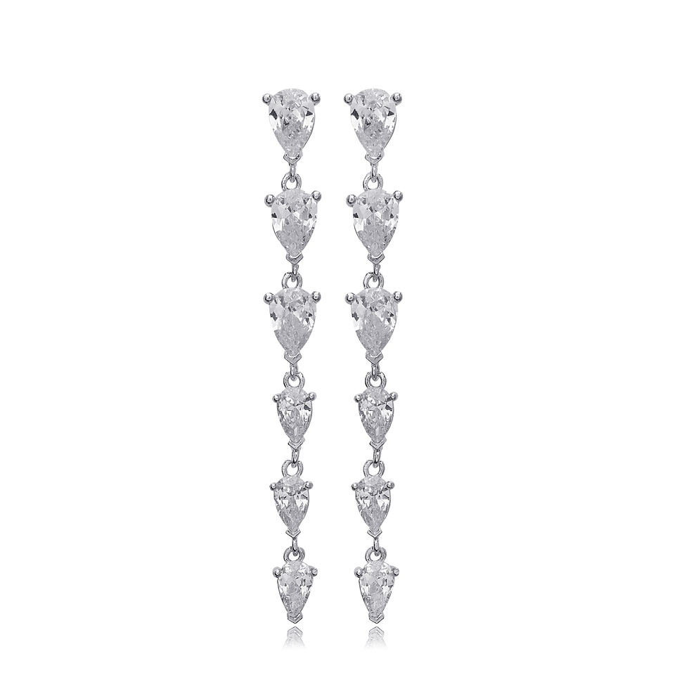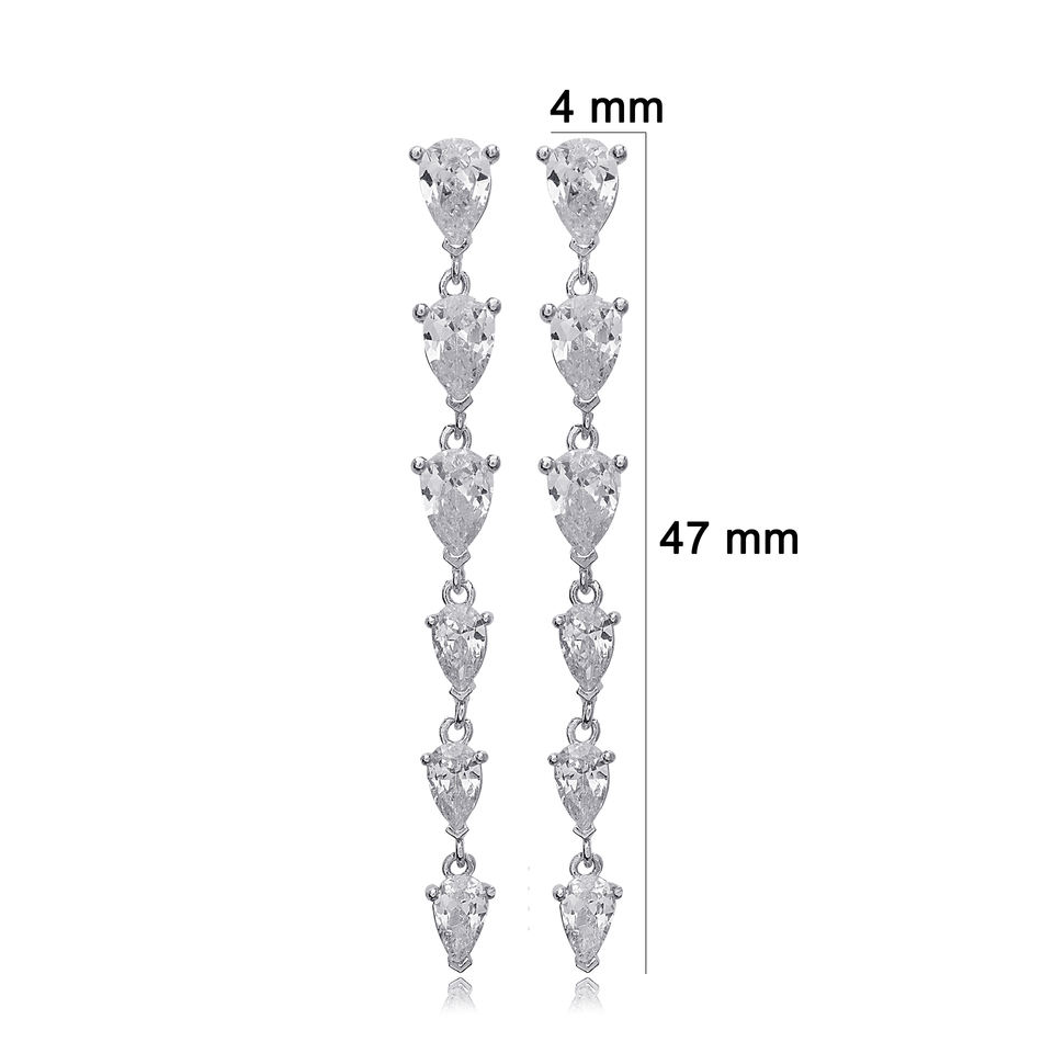 Pear Shape Shiny Clear Zircon Stone Woman Long Earrings Handcrafted 925 Sterling Silver Jewelry