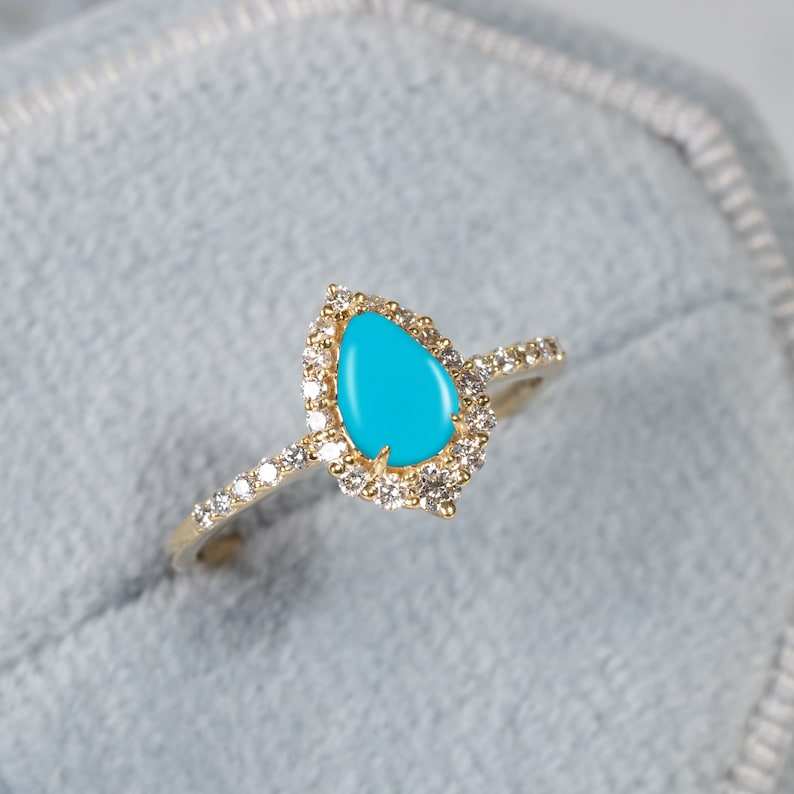 Pear Shape Turquoise Ring Halo Zircon Ring 925 Sterling Silver 14K Gold Plated Engagement Ring Bohemian Jewelry Gift
