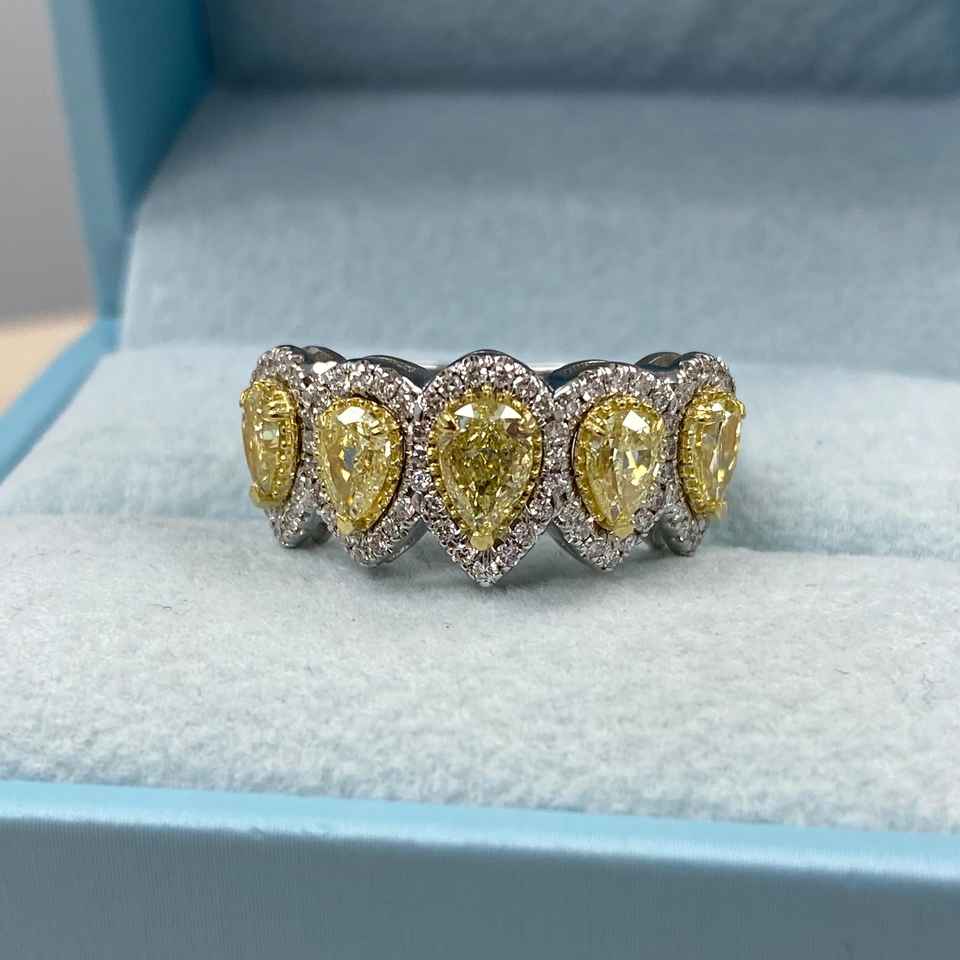 Pear Shaped 2Ct Fancy Light Yellow Diamond Wedding Band Art Deco Design Natural Diamond Anniversary 14k White Gold Gift Ring