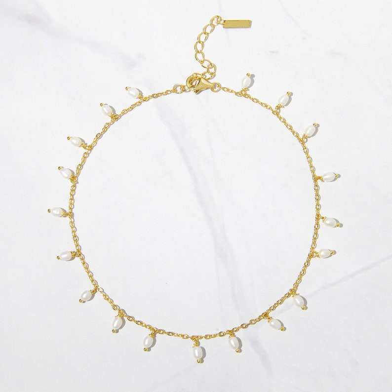 Pearl Anklet Freshwater Pearl Ankle Bracelet Dainty Bridal Beach Jewelry 925 Sterling Silver 14K Gold Plated Anklet