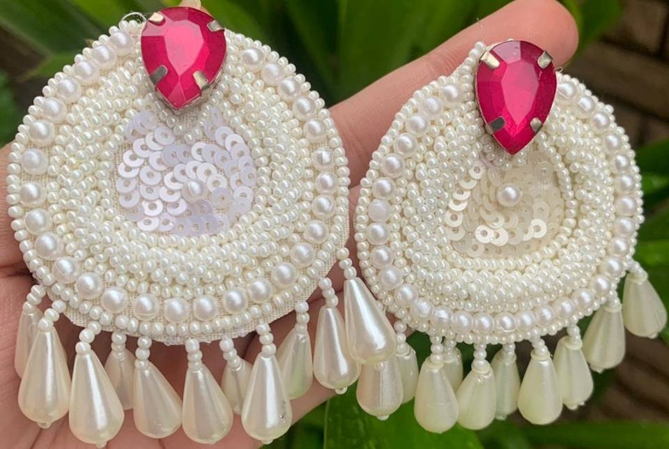 Pearl Embroidery Handmade Earrings Custom Multi-Beaded Earrings Women Festive Party Jewelry At Best Price Beaded Earrings
