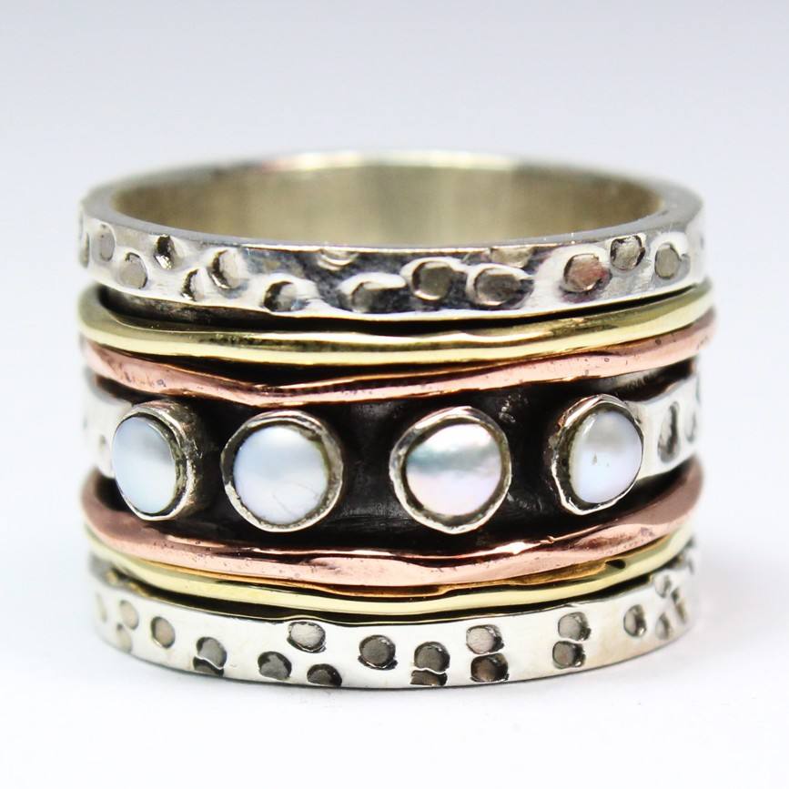 Pearl GemStone .925 Sterling Silver Jewelry Spinning Ring