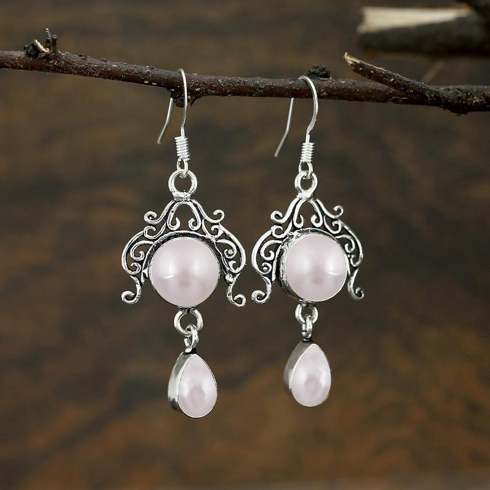 Pearl Gemstone Earrings 925 Solid Sterling Silver Round Pearl Earrings for Women Girls, Dangle Earrings Silver, Silver Earrings