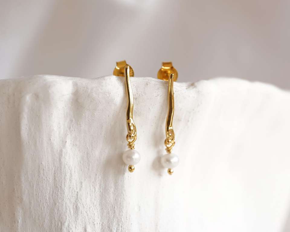 Pearl Gold Drop Earrings, Pearl Earrings, Gold Vermeil Earrings, Dangle Earrings, Handmade Earrings, Gold Earrings