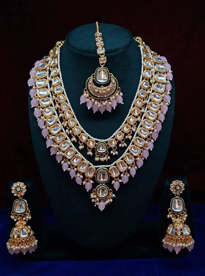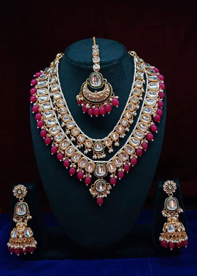 Products Name:Fancy Collection Gold Plated Kundan & Pearl Necklace Set