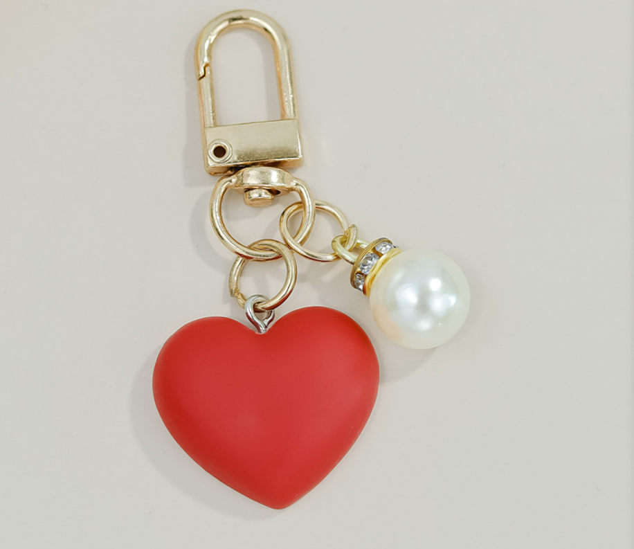 Pearl Heart Keychain for Women Lovely Key Bag Charms Metal Enamel Keyring