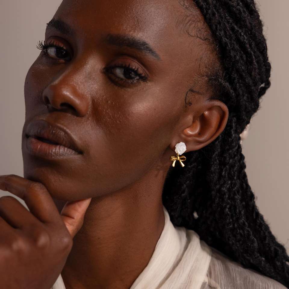 Product Name:Pearl Rose Bow Earrings