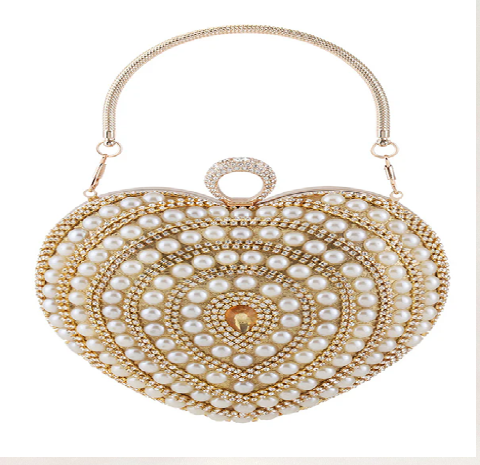 Pearl-draped maroon velvet bag with gold embroidery. Elegant fashion available at wholesale prices.