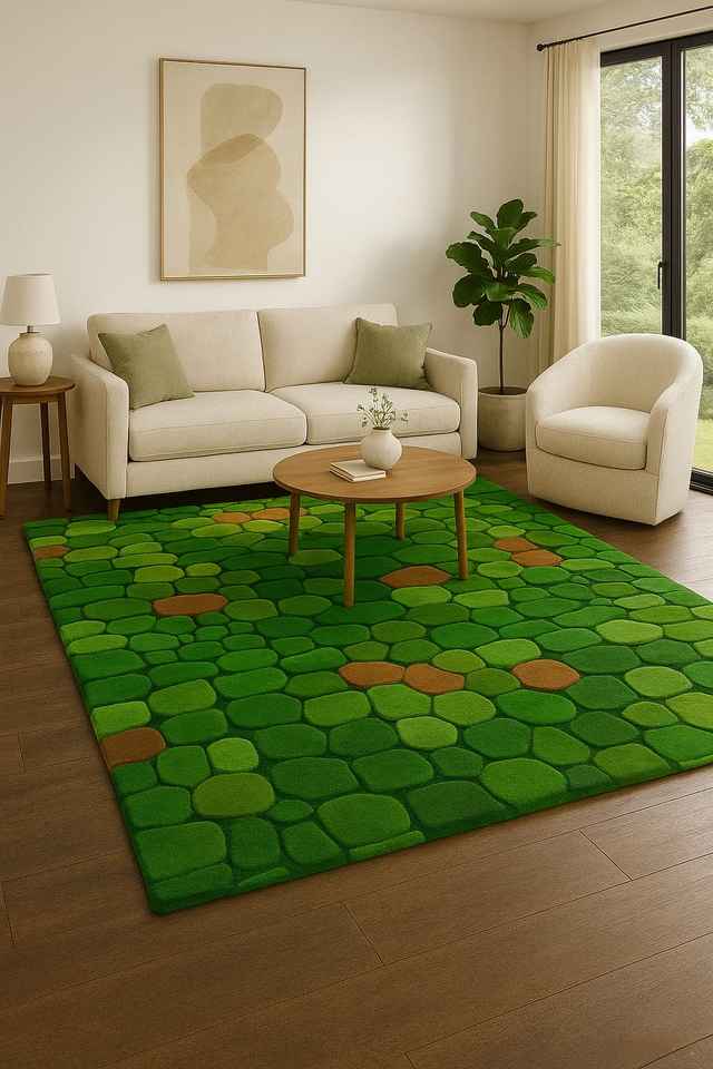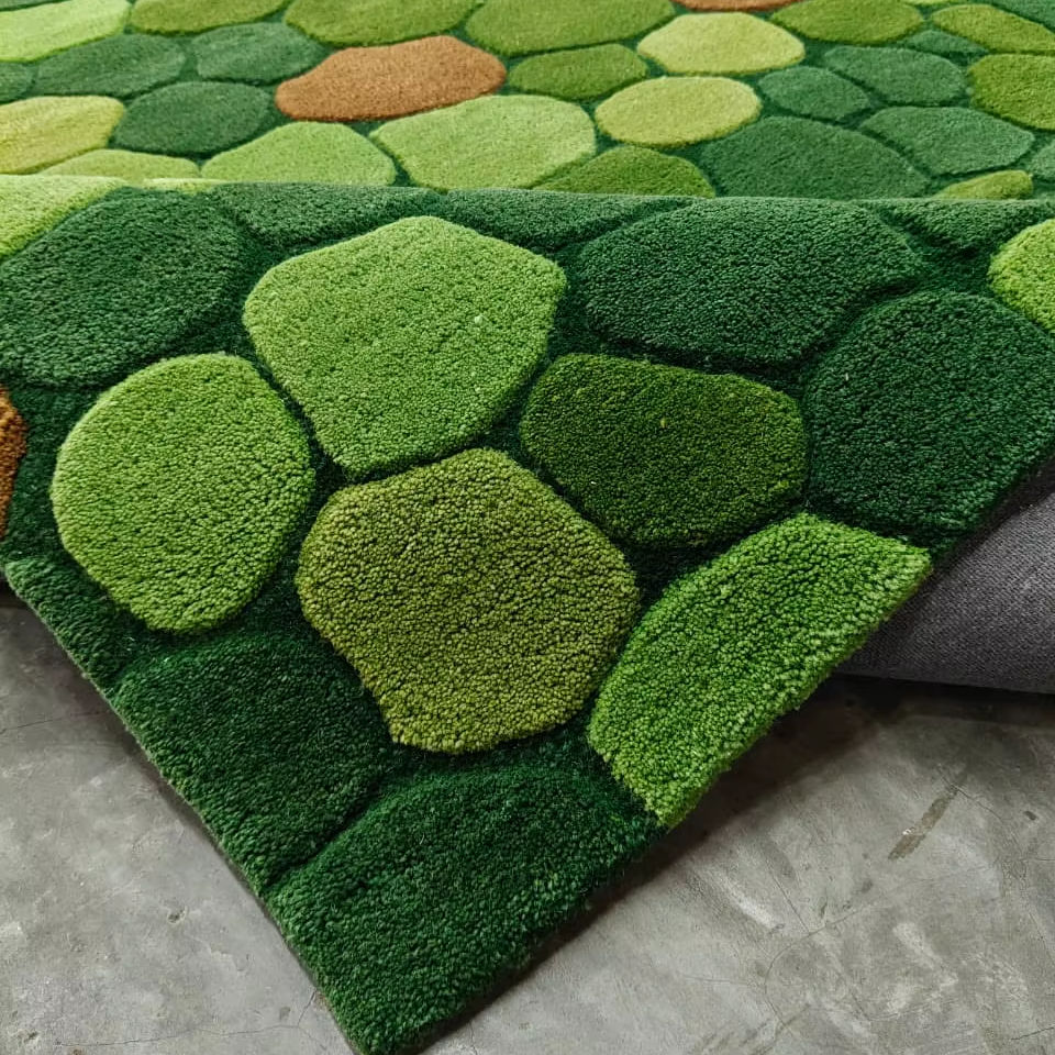 Pebble Pattern Green Tufted Carpet Rug 5x8 feet Nature Inspired Floor rug Modern Nature Style Carpet for Modern home hotels