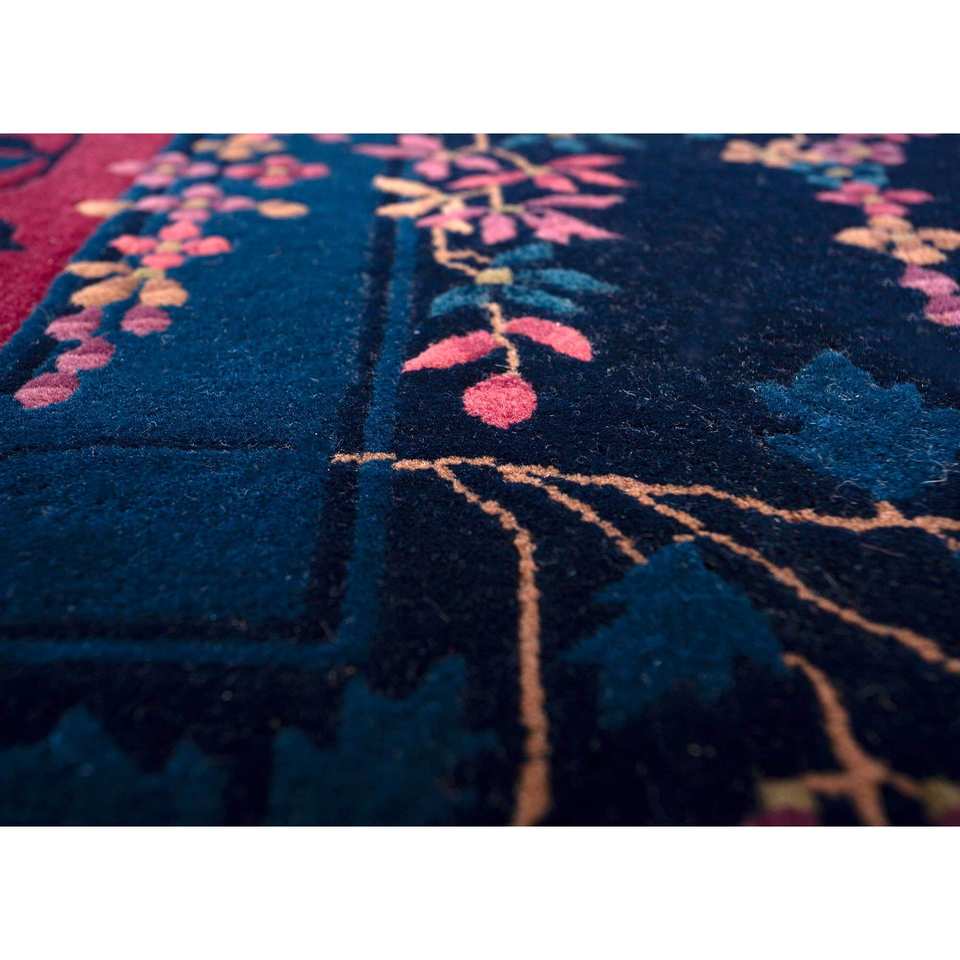 Pechino Blue Hand Knotted Wool Rug Floral Pattern 3D Rugs for Home for Living Room Hallway Entryway Rectangle Puzzle Pae-5441