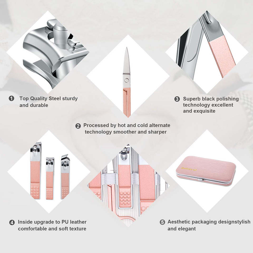 Pedicure Kit Nail File Clipper Pusher Tweezers Beauty Care Instruments Set With Zipper Case 11 Pieces