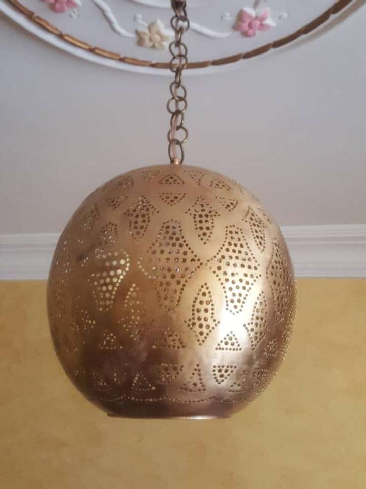 Vintage Antique Brass Pendant Lamp with Suspended Copper Ball Moroccan Traditional Light for Home or Hotel with Bulb Included