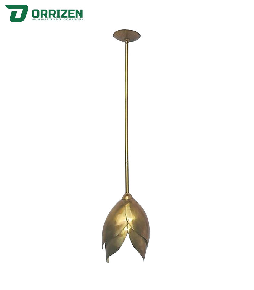 "ORRIZEN" Iron Gold Finish Floral Design Hanging Pendant Lamp Typically Suspended by a Cord, Chain, or Metal Rod.