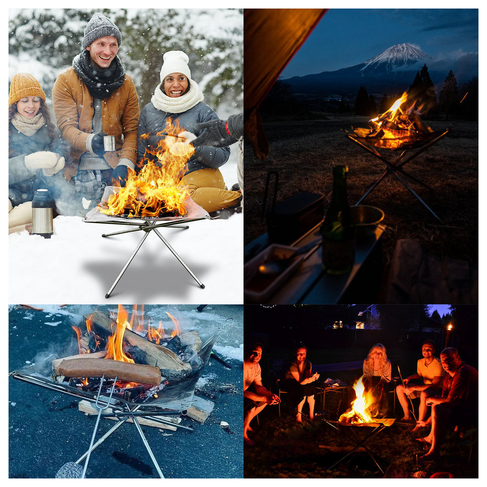 Penobon Black Portable 10 kg Stainless Steel Fire Pit Grill Lightweight Foldable Barbecue Rack for Camping Campfire Wood Stove