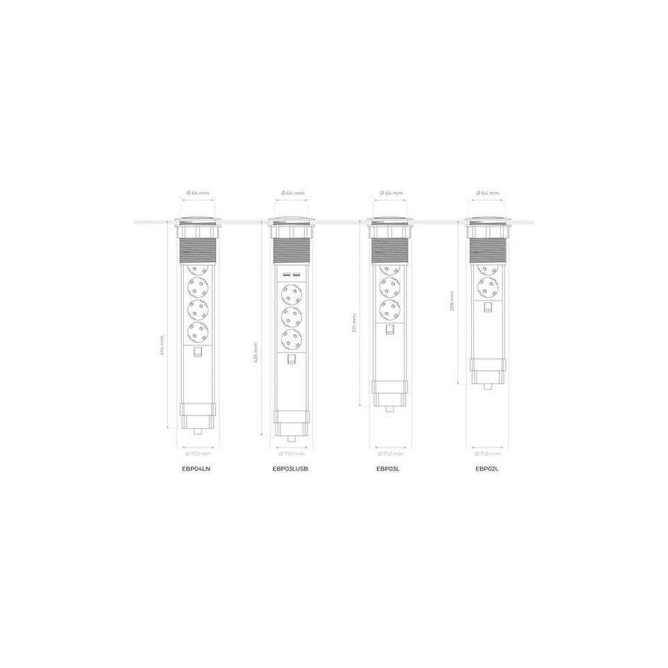 Perel 3-WAY POP-UP DESKTOP SOCKET - SCHUKO