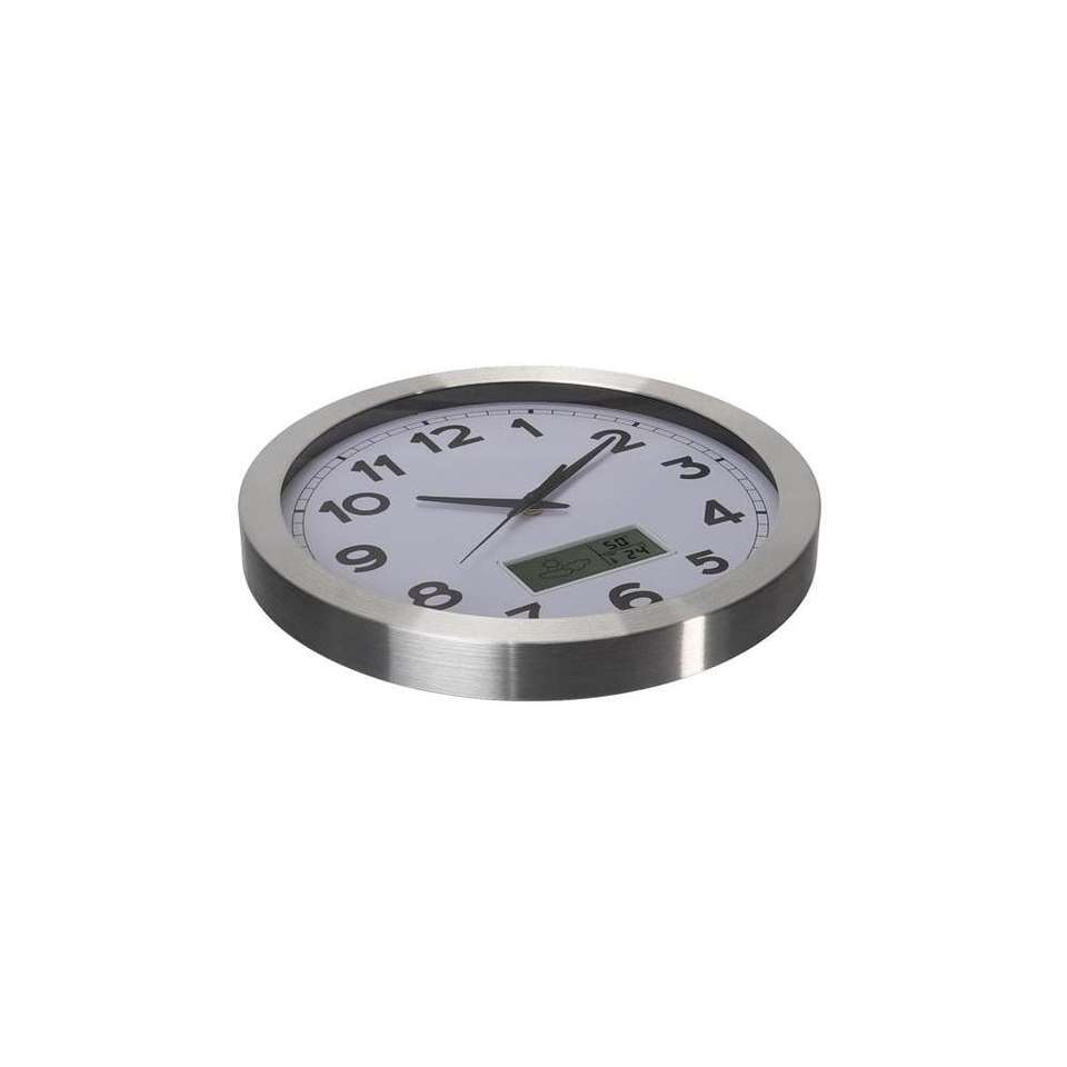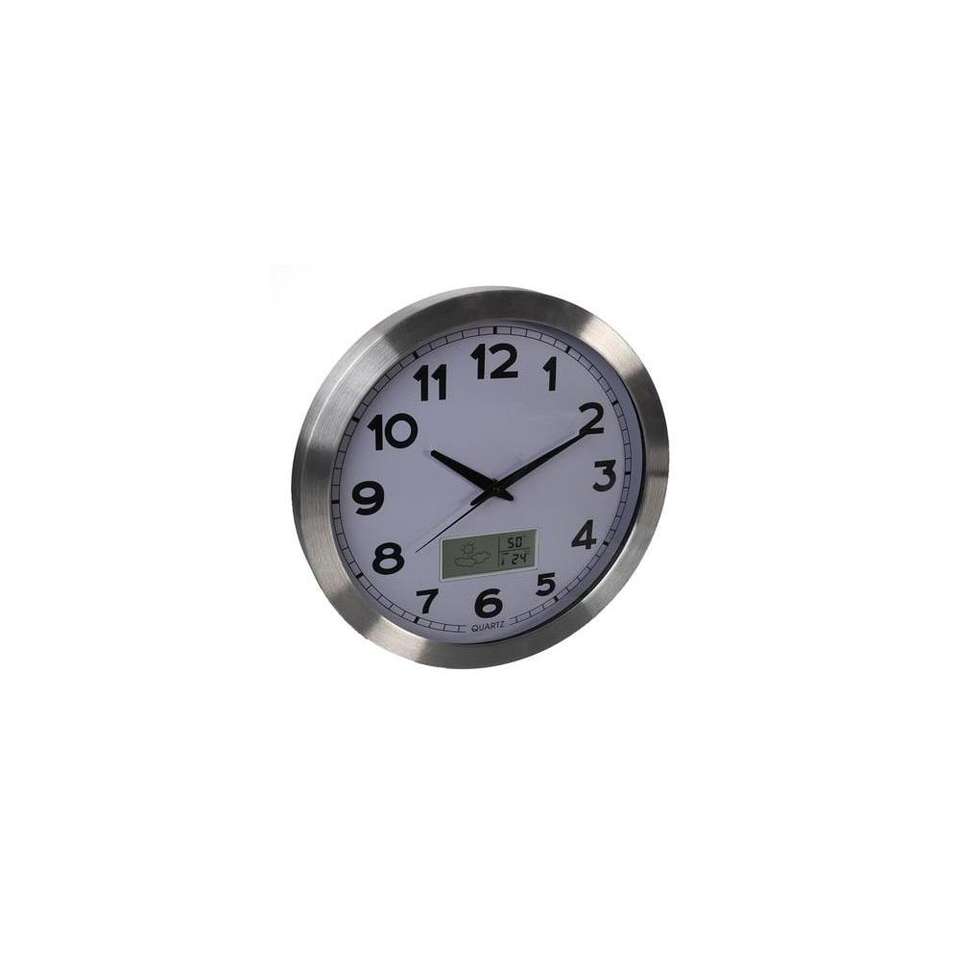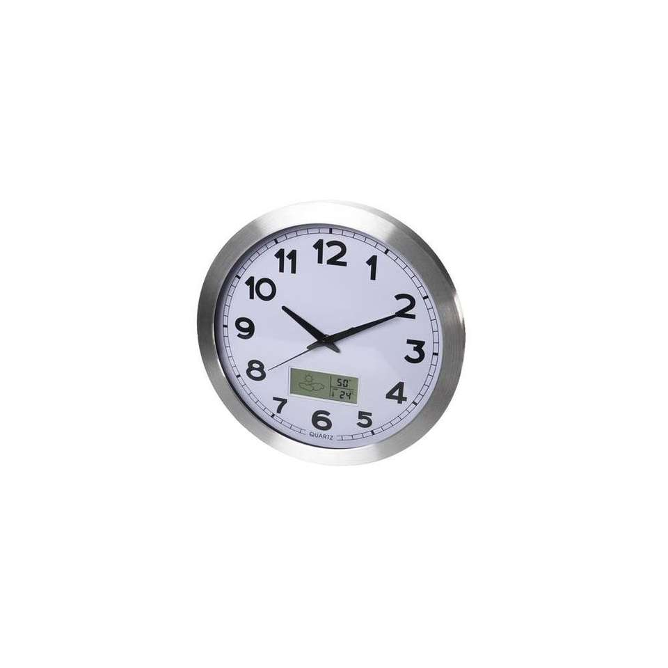 Perel ALUMINIUM LCD WALL CLOCK WITH THERMOMETER, HYGROMETER & FORECAST - Ø 35 cm