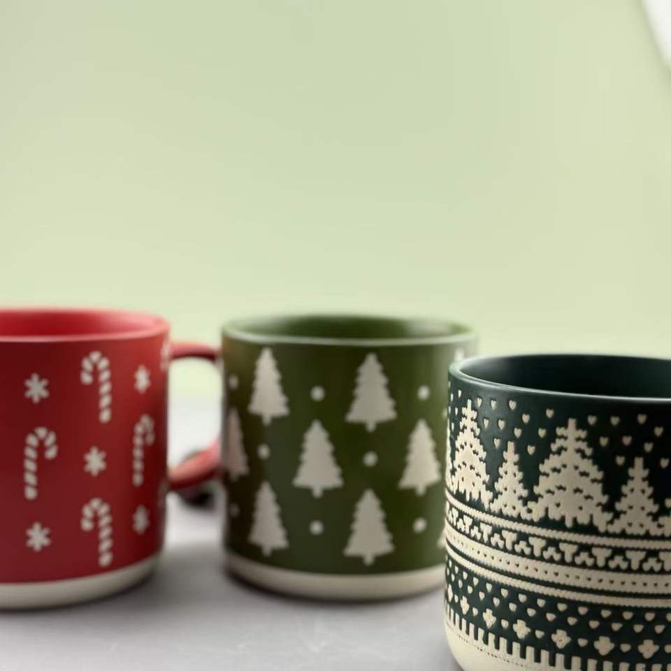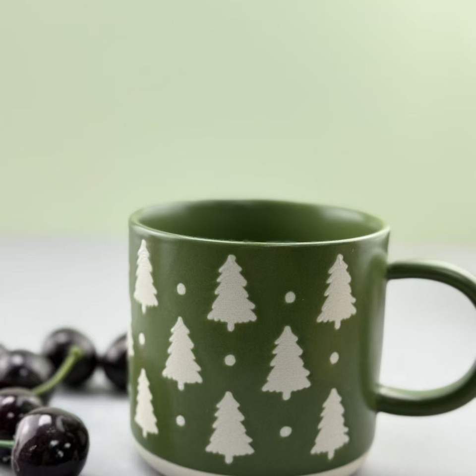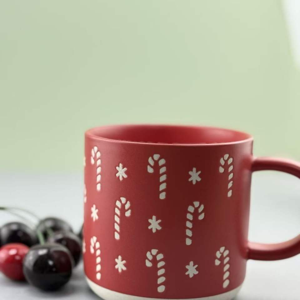 Perfect Quality Cartoon Pattern Eco-friendly Stoneware Ceramic Red Green Dishwasher & Microwave Safe Bulk Mugs