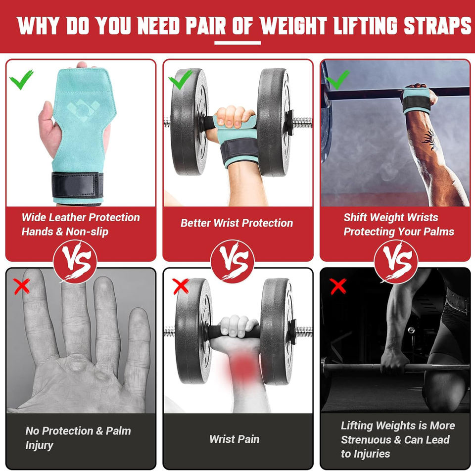 Perfect Size Heavy Duty Leather Wrist Straps for Weightlifting Powerlifting Gym Workouts Training Fitness Safety High Quality