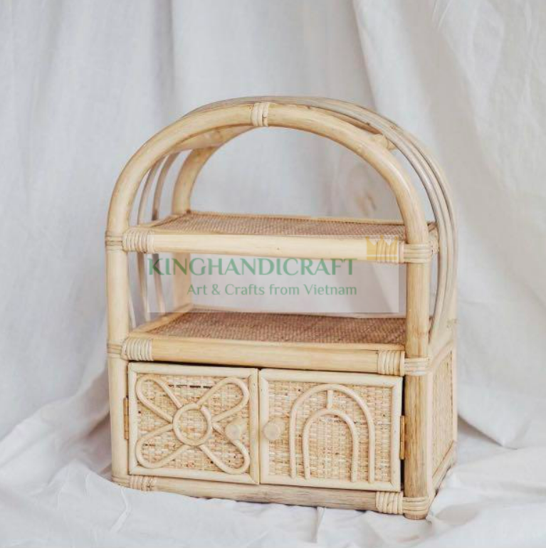 Perfect Tiny Handmade Rattan Doll Cabinet Semi Closed Open Shelf Door Combination Natural Wicker Model Toy Wardrobe Wholesale