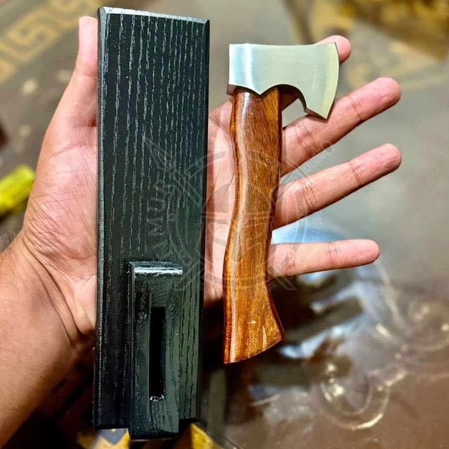 Perfect for Daily Use Industrial Mini Carbon Steel Viking Axe Customized Leather Ash Wood Handle Camping Hatchet Gift for