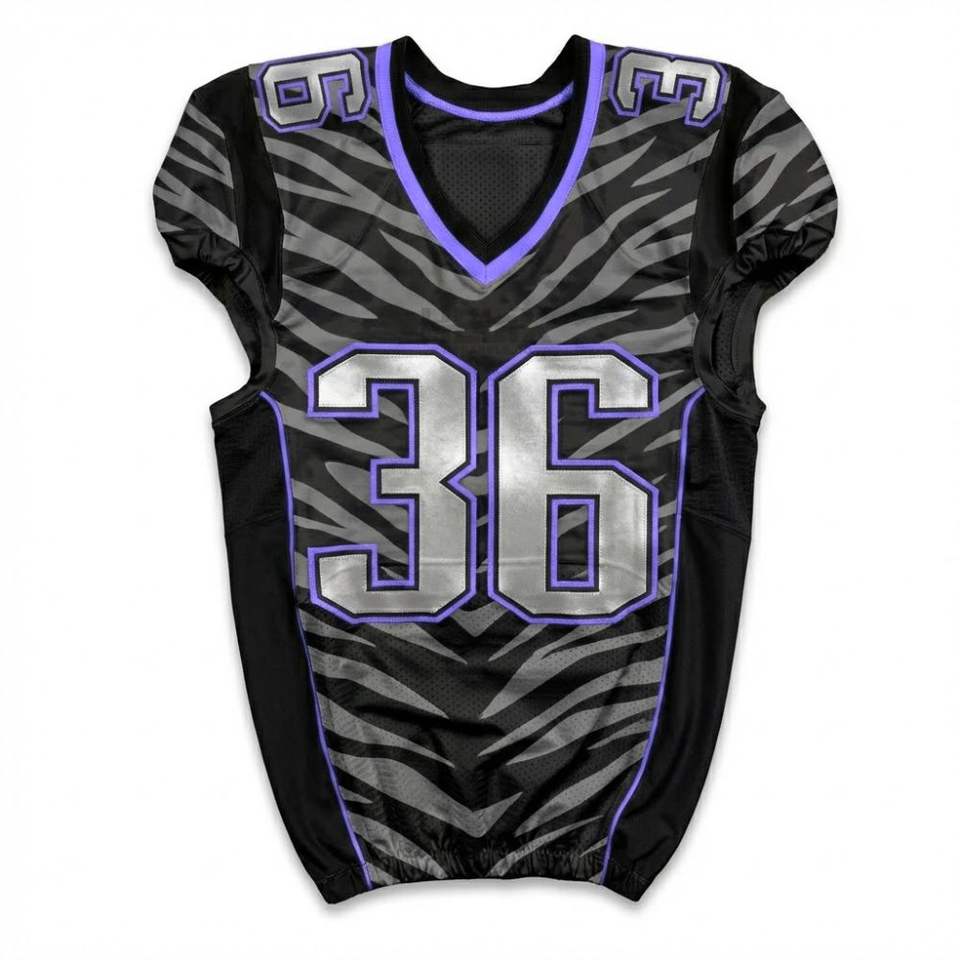 Performance Black Grey Zebra Stripe American Football Jersey Sublimated Team Custom Unique Pattern Gridiron Sportswear Uniform