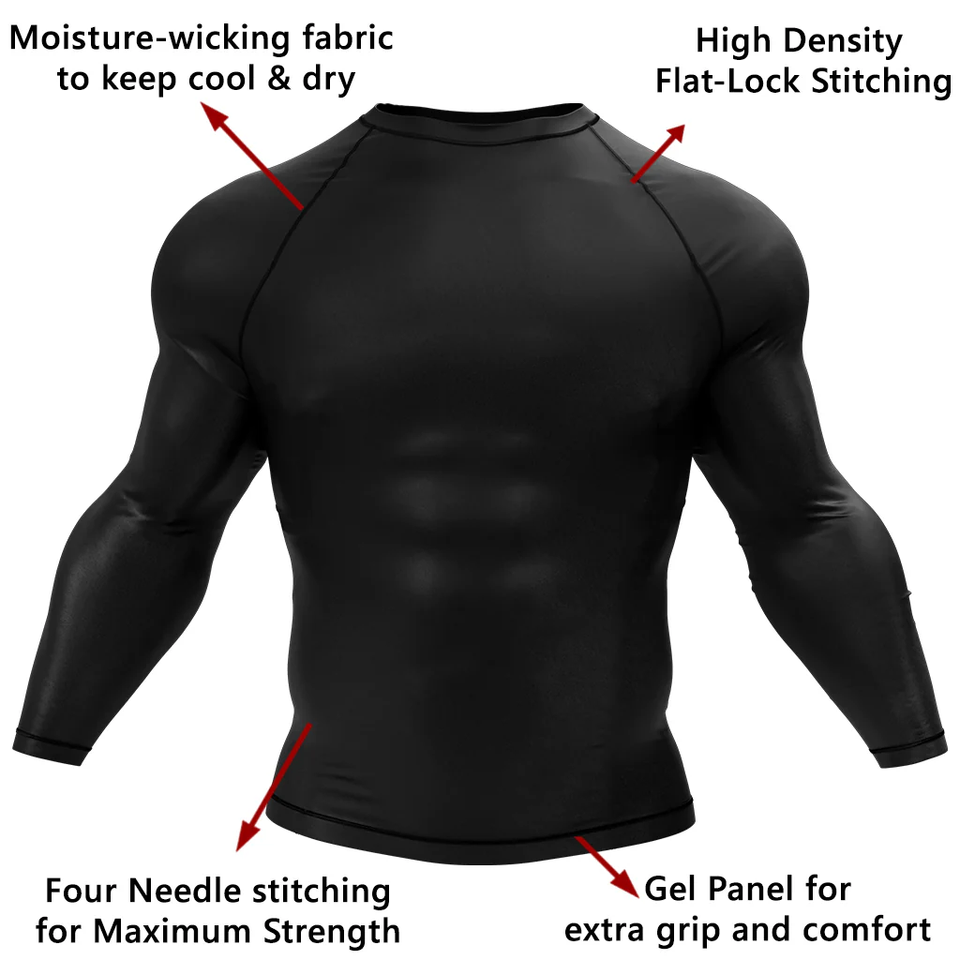 Performance MMA Rash Guard Moisture Wicking and UV Protective Nylon Fabric for All Athletic Activities