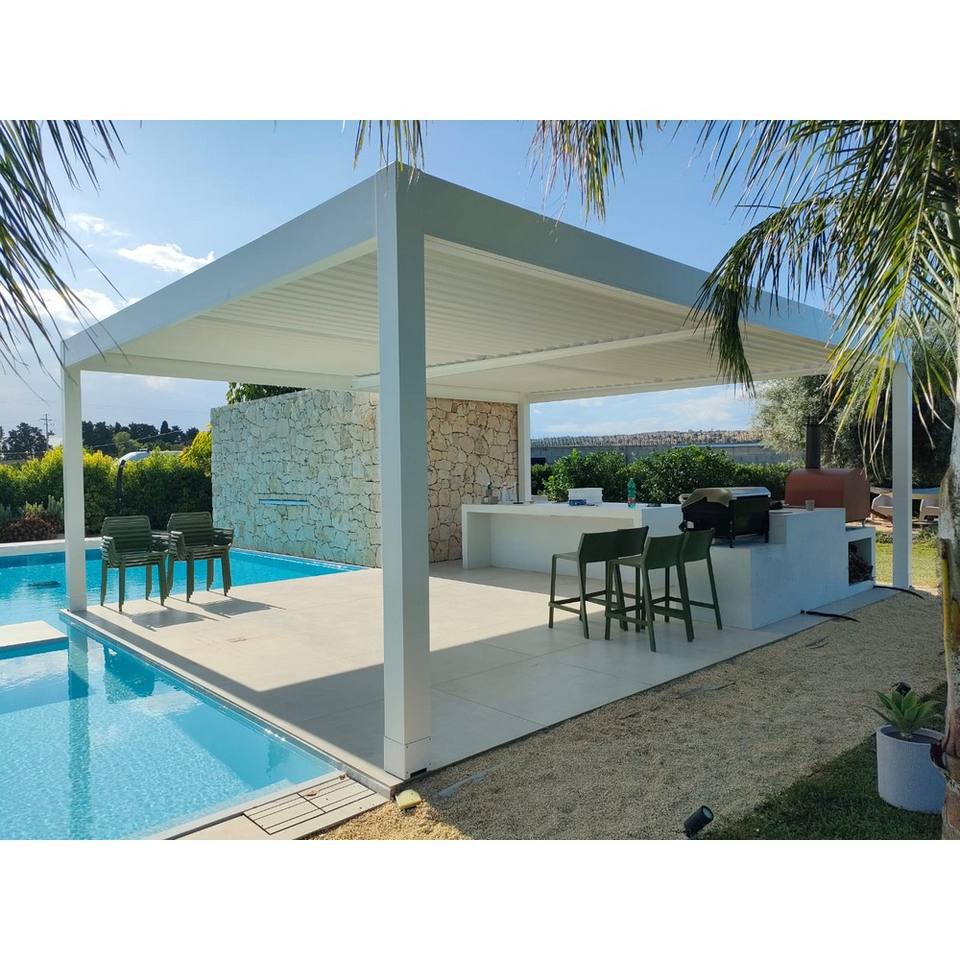 Pergole Su Misura Favignana_2 7x7 Bioclimatic Aluminum Pergola Italian Wall-Leaning Design Enhances Outdoor Spaces Gazebo