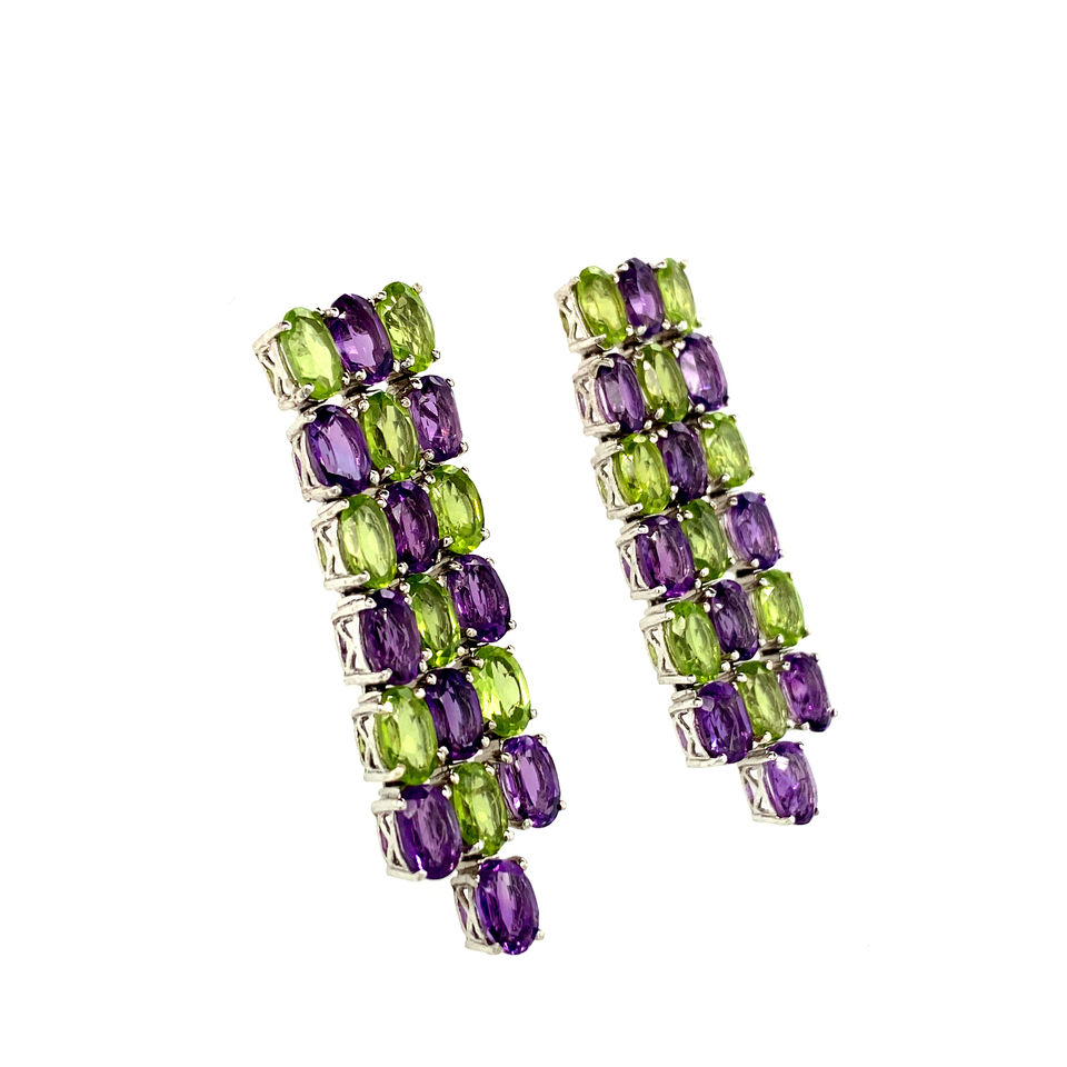 Peridot and Amethyst Gemstone Fashion Hoop Earrings Jewelry Simple and Elegant Natural Oval Stone Fashion Accessory