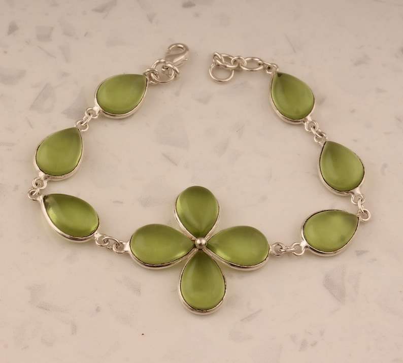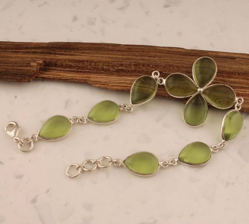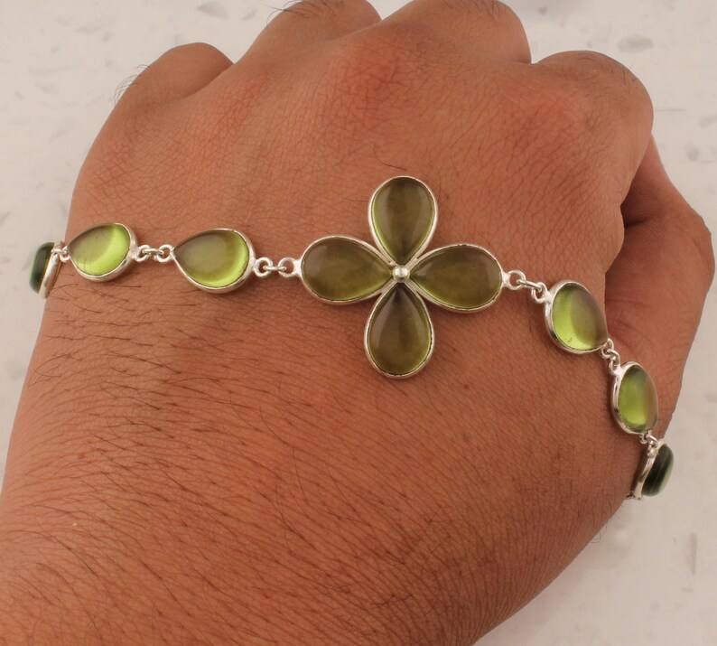 Adjustable 925 Sterling Silver August Birthstone Peridot Bracelet with Leaf Design Fine Bangle