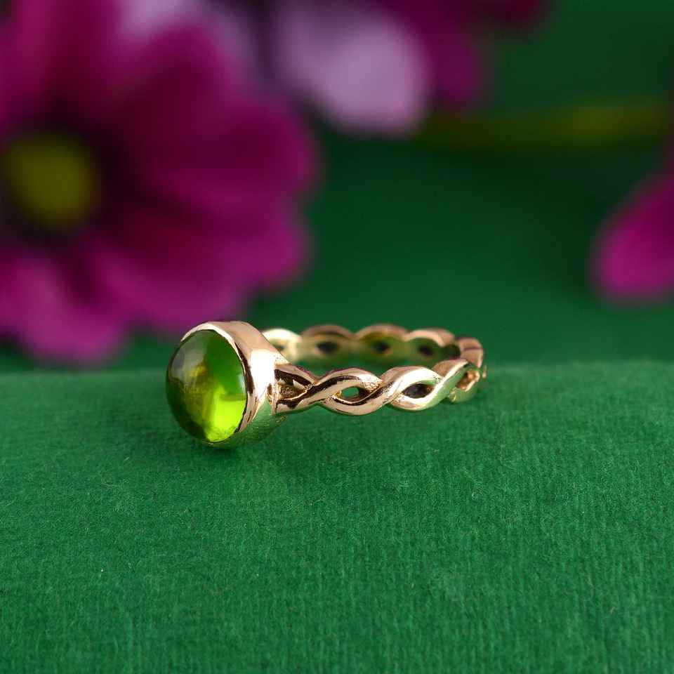Peridot Brass Ring Gold Plated Gemstone Cabochon Vintage Wedding Handmade Adjustable Stackable Birthstone Rings for Women