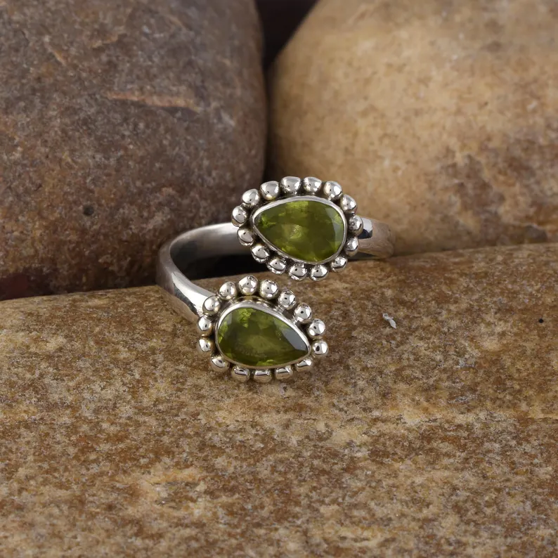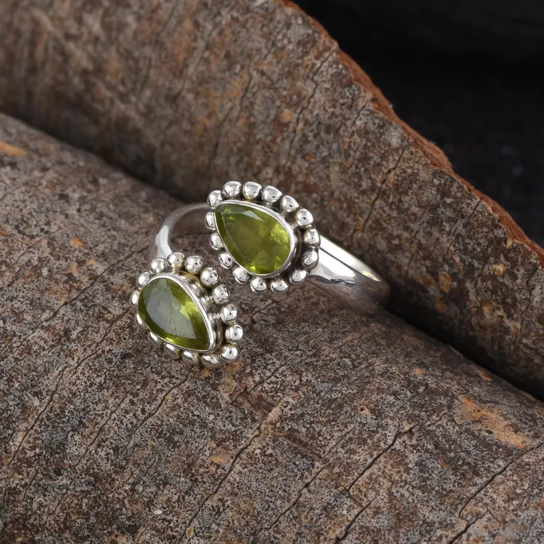 Peridot Cabochon Natural Gemstone 925 Sterling Silver August Birthstone Stacking Ring Wholesale Jewelry Factory Price