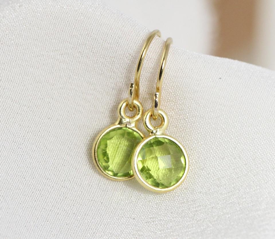 Peridot Earrings with Gold Plating - Round Natural Stone Drop Design August Birthstone Jewelry for Women with Ear Wire