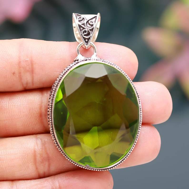 Peridot Pendant 925 Sterling Silver Oval Shape Gemstone Vintage Green Stone Pendant Women Jewelry Artisan Jewelry