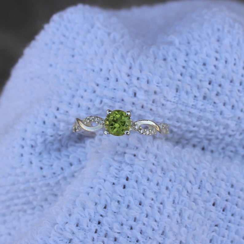 Peridot Ring Handmade 925 Sterling Silver Round Stone Natural Gemstone Jewelry August Birthstone Gift
