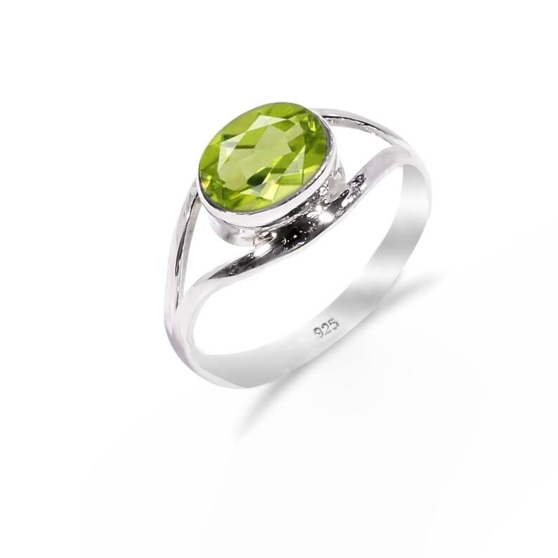 Peridot Ring Sterling Silver August Birthstone Handmade Gemstone Jewelry For Women Elegant Fashion Gift