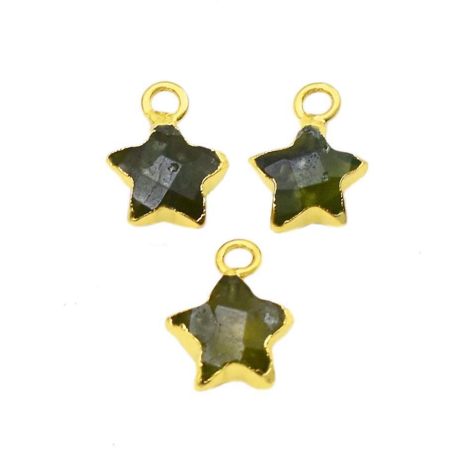 Peridot Star Gemstone Pendant Faceted Gold Electroplated Tiny Charm for Necklace & DIY Jewelry