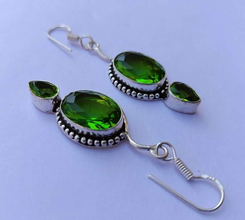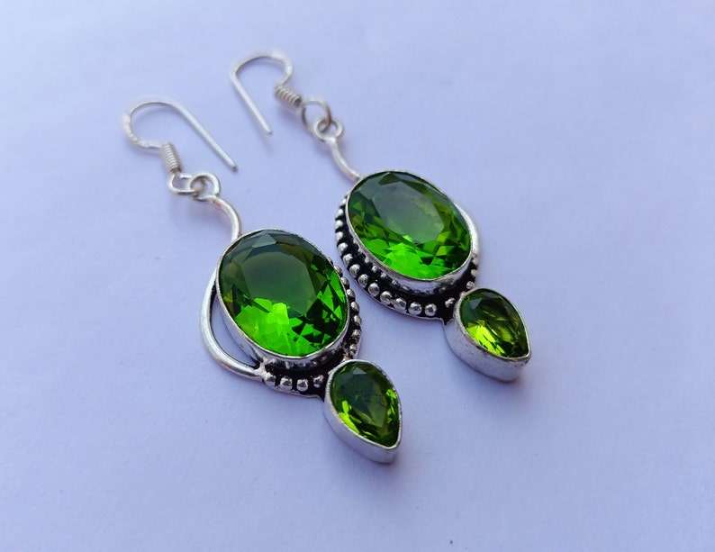 Peridot Stone Handmade Silver Plated Earrings Natural Gemstone Jewelry Boho Fashion Accessory For Women