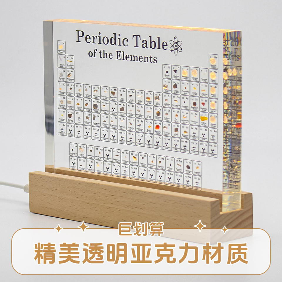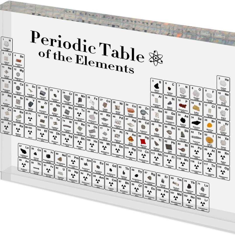 Periodic Table Of Elements Embedded Specimens Acrylic Desk Decor For School Chemistry Gift Collectible