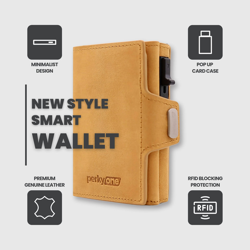 Perkyone Jazzy Genuine Leather Wallet Handmade Compact Everyday Card Holder Slim Open Closure Long Short Lengths for Cash Usage