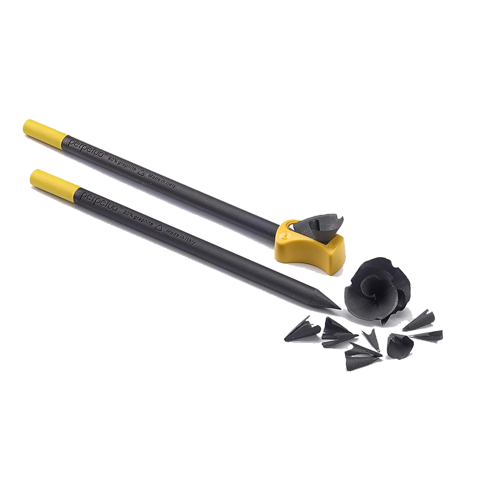 Perpetua Ecological Pencil Built-in Rubber and Yellow Sharpener for Left-Handed Users Made of Recycled Graphite Back to School