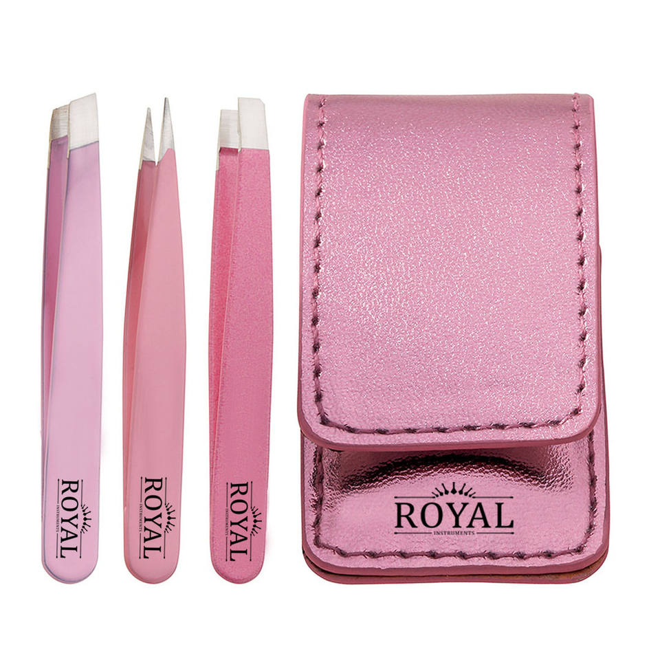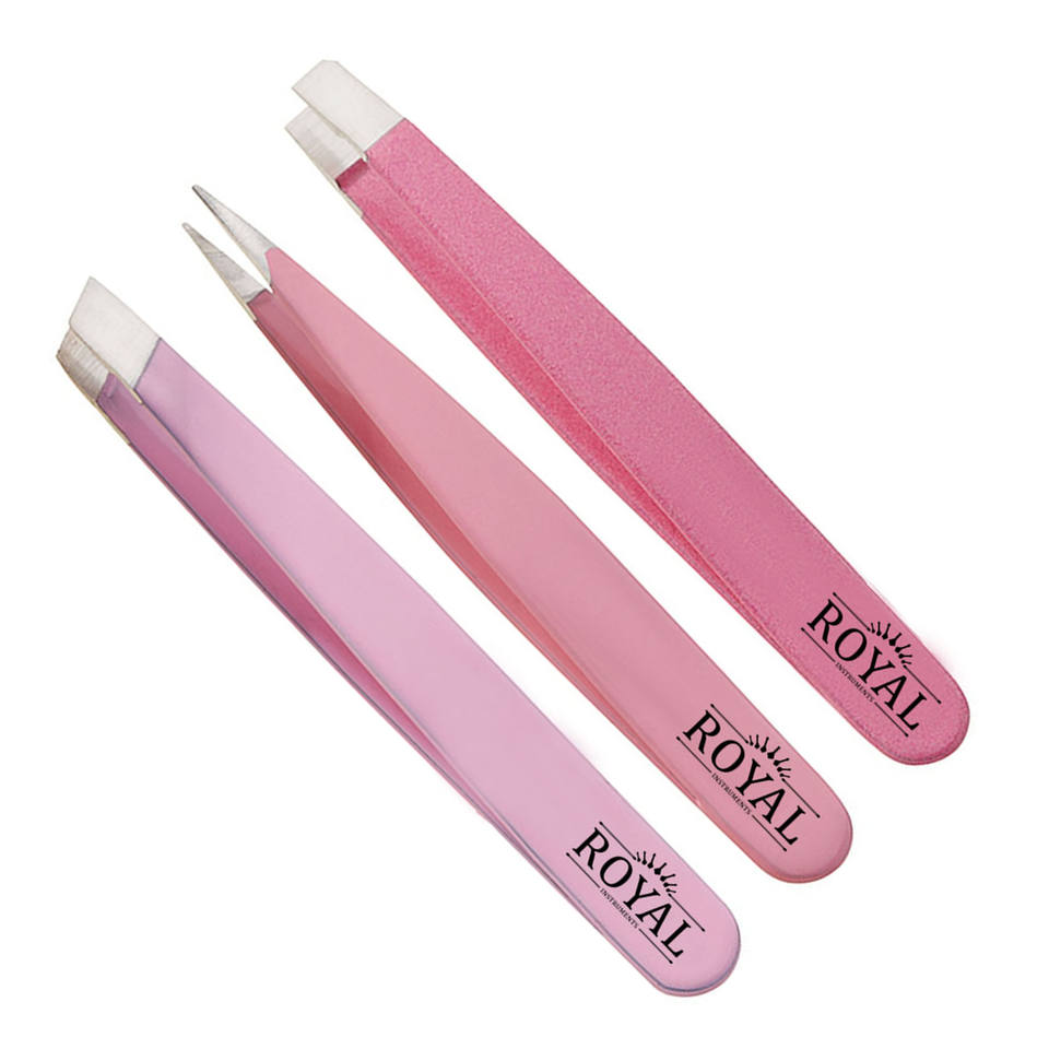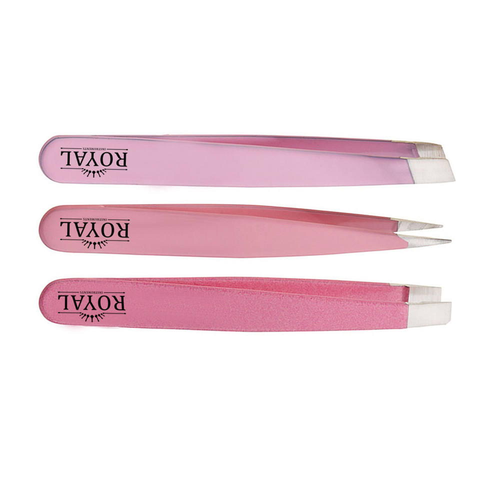 Personal Touch Ladies Eyebrow Caring Tweezers Squared/Slanted/Pointed Tip Eyebrow Pink Tweezers Sets