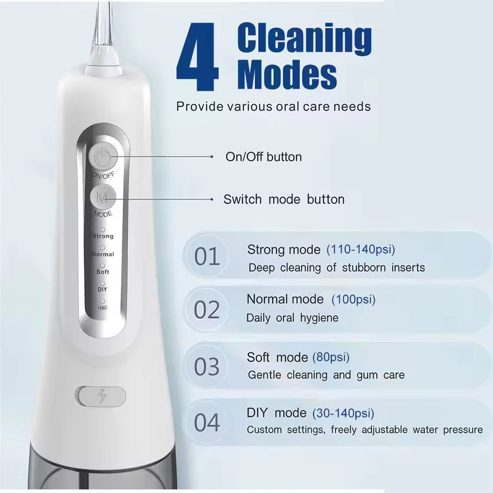 Personal Oral Care Handheld Water Flosser Portable Tooth Cleaner 4 Cleaning Modes Dental Flossing Outdoor Hotel Use Battery