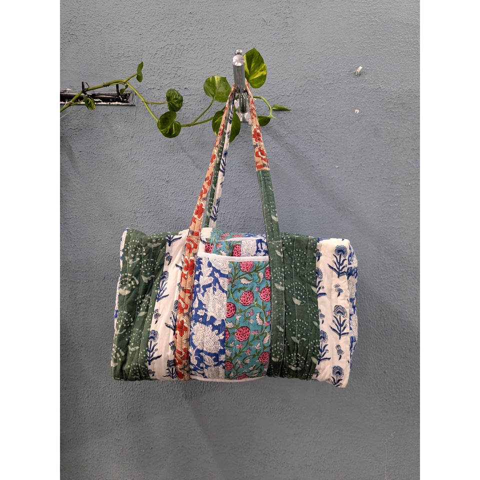 Personalised 100% Cotton Duffle Bag Large Patchwork Quilted Design Block Print Summer Winter Travel Market Shopping Gift Her