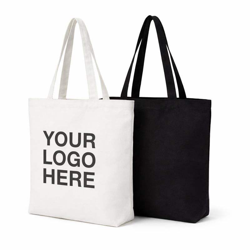 Personalised Corporate Brand Identity Merchandise Black White Heavy Duty Canvas Tote Bag With Logo Print For Business Marketing