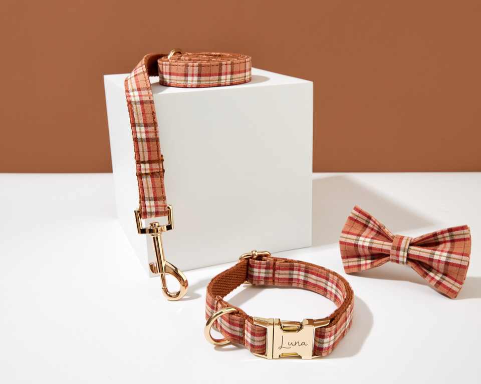 Personalised Custom Engraved Alloy Tactical Dog Collar Leash Bow Tie Set for Girl and Boy Dogs Pink Solid