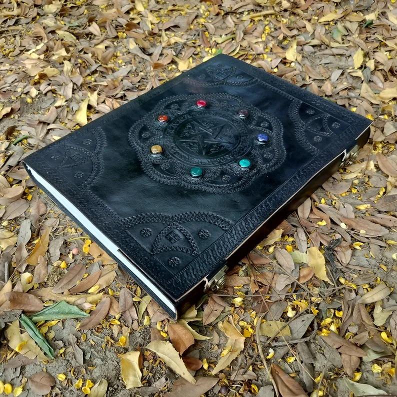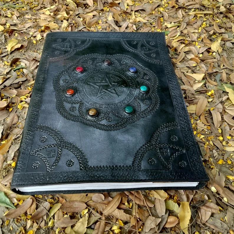 Personalised Extra Large A5 Spiral Journal Pentagram Seven Stone Leather Organizer Custom Logo Saddle Stitching Gift Packaging