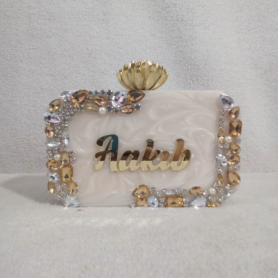 Personalised Name Resin Clutch Imitation Pearl Gold Plated Vintage Butterfly Solid Charm Necklace Complete Set Women's Wedding