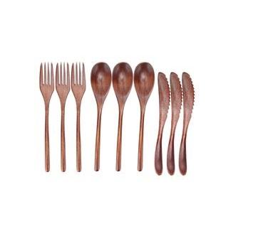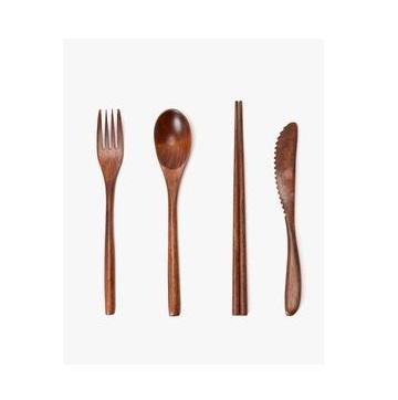 Personalised Natural Wooden Handle Travel Cutlery Flatware Tableware Restaurant 100% Natural Wooden Bamboo Handle Cutlery Set